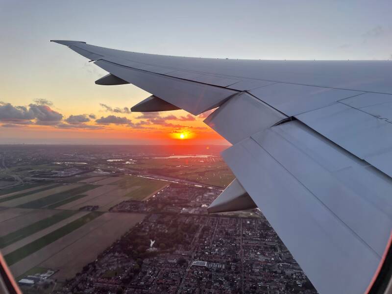 Na het eten gingen we naar de gate. Bij de gate zagen we meteen weer allemaal bekenden, dus dat was leuk. Na de laatste controles konden we aan boord. Door grote drukte in het Europese luchtruim vertrokken we 50 minuten later dan gepland, maar de piloot vertelde dat hij meer brandstof had getankt, zodat we sneller konden vliegen om de verloren tijd in te halen en dat lukte.