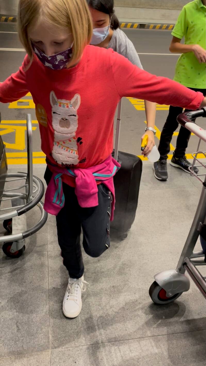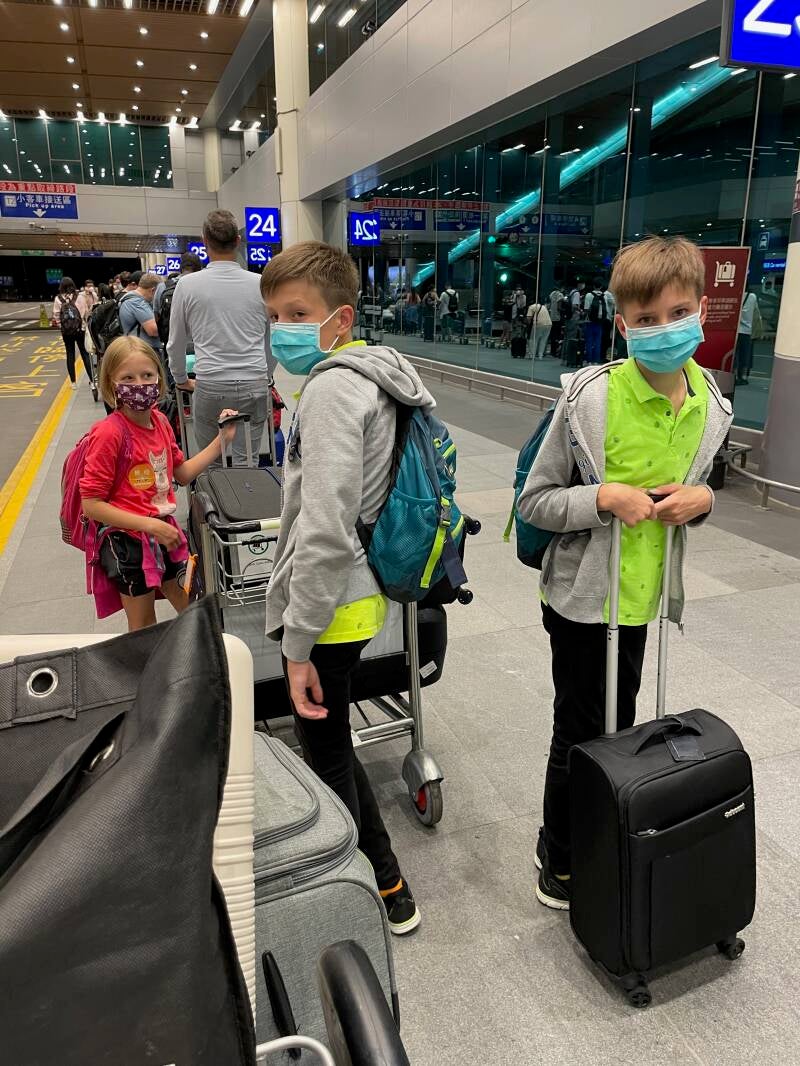 We werden weer verwelkomd door een heel leger van in plastic verpakte mensen. Na het invullen van de benodigde formulieren op onze telefoons mochten we weer verder naar de volgende balie. Daar kregen we de instructie voor de quarantaine en een stapel zelftesten. Vervolgens langs de security om onze bagage te laten scannen en daarna door de douane en toen richting de bagageband. Bij aankomst in Taipei vond ik het zó spannend of al onze koffers er wel bij zouden zijn. Na al die horrorverhalen van reizigers die al weken hun koffer kwijt zijn, was ik daar toch wel een beetje bezorgd over. Het zijn maar spullen , maar toch... We kwamen bij de bagageband en meteen zagen we onze eerste koffer al... en binnen no-time hadden we alle zes de koffers! Dat was dus een hele opluchting! De drugshond ging er nog even aan snuffelen, maar deze vond niets, dus we konden weer door.