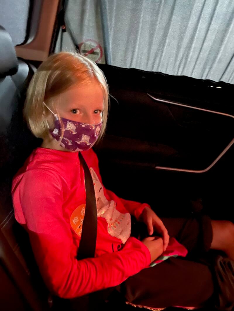 Buiten bij het vliegveld moesten we een saliva test doen en daarna gingen we in de rij voor een taxi, maar niet voordat we allemaal van top tot teen weer werden ingespoten met een of andere desinfectie spray... Het wachten op de taxi duurde, denk ik, nog het langst. Uiteindelijk had Pitrik een taxi samen met de jongens en ik samen met Ellis. Wij hadden een klein en een grote taxi en zo pasten alle koffers en wij er precies in.