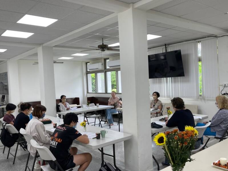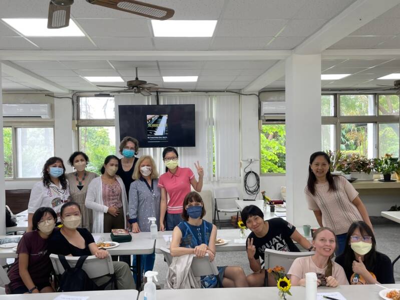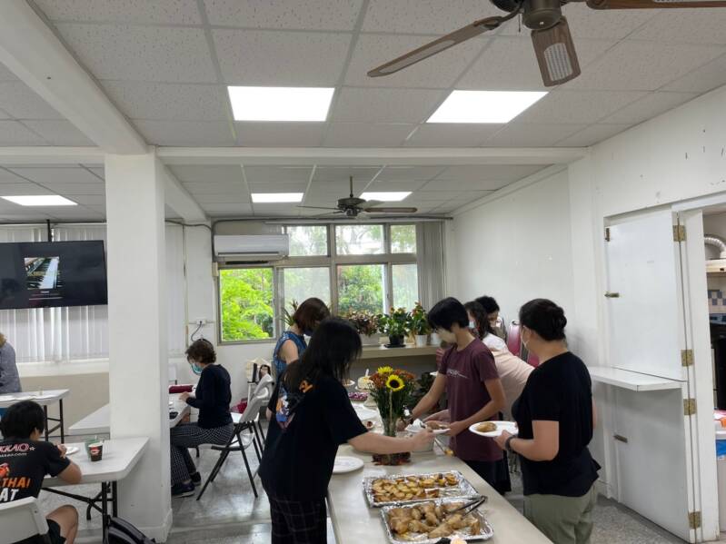 Elke eerste zaterdag van de maand is er Ladies Fellowship in de kerk. Ik ben er de meeste keren al naartoe geweest. Het is altijd leuk om andere vrouwen te ontmoeten. We zingen met elkaar een aantal liederen, bespreken een thema en lunchen met elkaar. Ondanks dat er dit weekend ook een typhoon langs komt, gaat het gewoon door. Het is ongeveer 5/10 minuten lopen naar de kerk. Als ik van huis ga, regent het wel, maar ik besluit om toch te gaan lopen met de paraplu... Nou, dat heb ik geweten... voordat ik goed en wel onderweg was, kwam het met bakken uit de hemel. Het water liep als een snelstromende beek van de berg af... zo over m'n schoenen heen... de paraplu had door de wind geen enkel nut... en voordat ik bij de kerk was, was ik echt helemaal doorweekt... (geen foto van...)