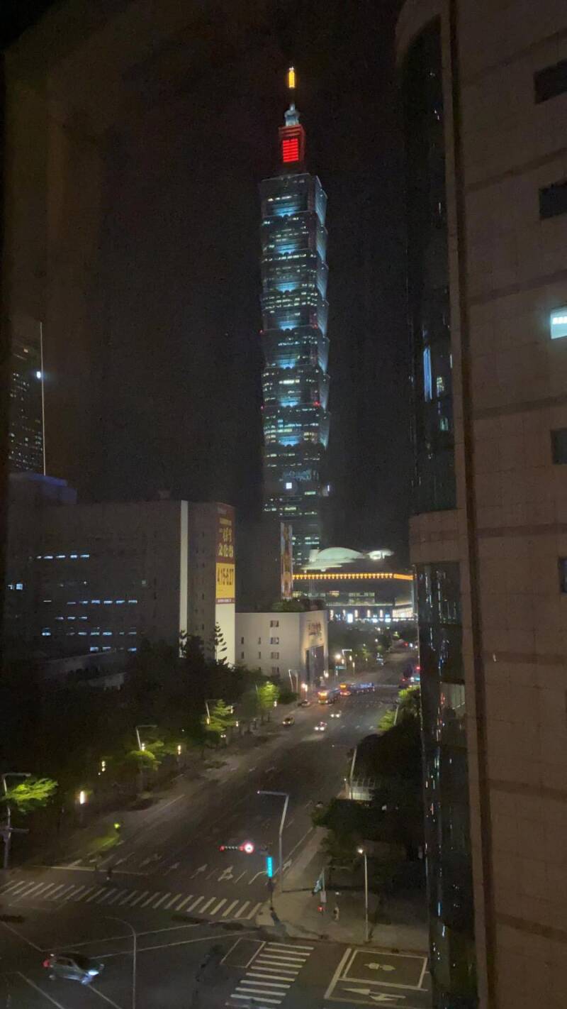 Uitzicht op de Taipei 101 vanuit het hotel - 12 april 2021 Pitrik is weer vrij - eerste foto buiten - 27 april 2021