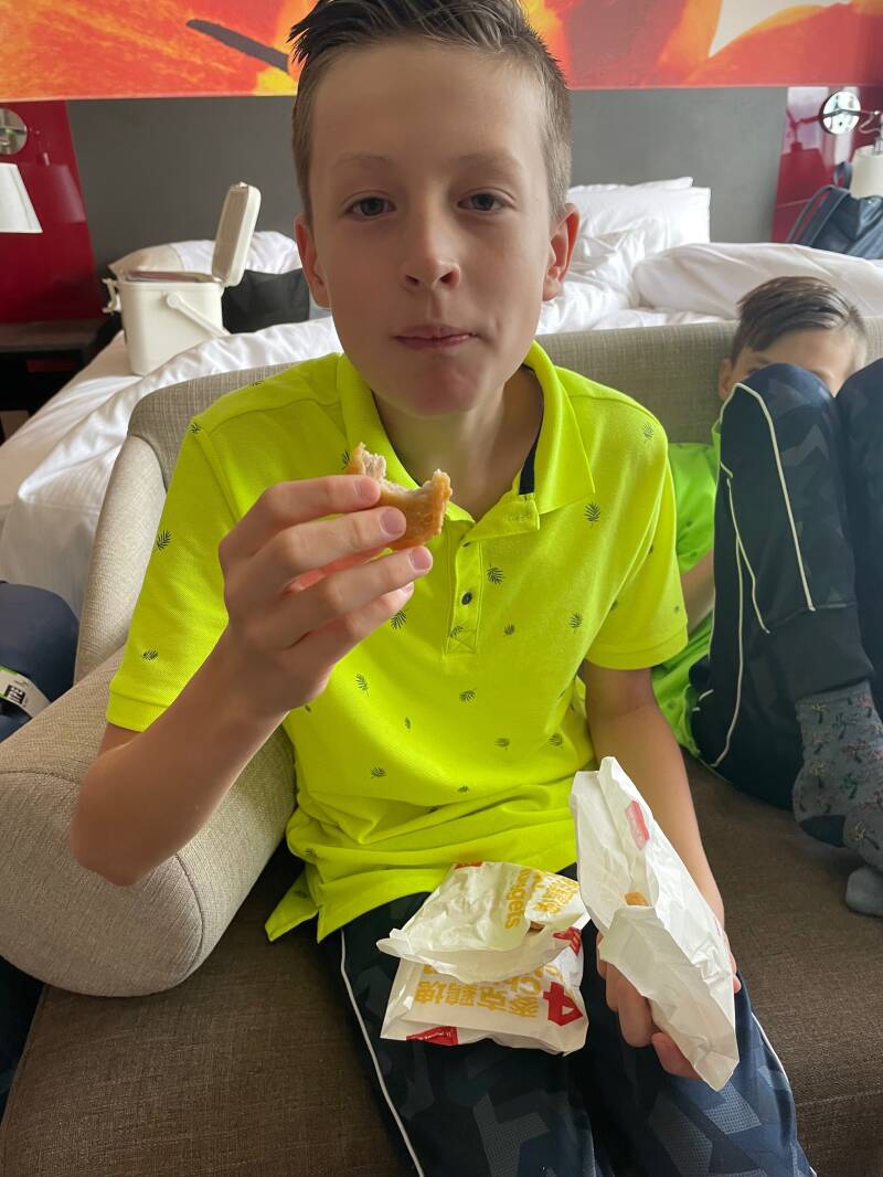Noah geniet nog van de kipnuggets bij het ontbijt... en dan vetrekken we uit het hotel - 12 september 2021