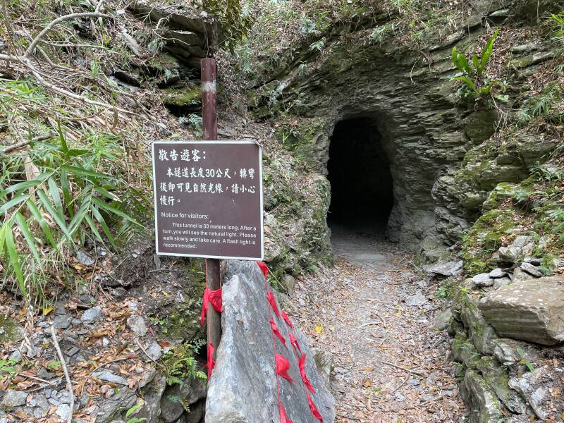 Daarna stappen we weer in de auto en rijden we de Taroko Gorge verder in om te kijken of we daar nog een wandeling kunnen maken. De omgeving is heel indrukwekkend en echt prachtig. Gigantische hoge bergen en dan die kloof... heel mooi. We rijden over hele smalle weggetjes en door hele smalle tunnels en overhangende rotsen. Onderweg stoppen we een paar keer om van het uitzicht te genieten en wat foto's te maken. Uiteindelijk stoppen we bij het Lushui trail. Dit is een korte wandeling, want het is al niet meer zo heel vroeg en de kinderen staan niet te springen om te gaan wandelen. We willen wel op een normale en veilige manier weer thuis komen, dus we kiezen hiervoor. Het is een mooie hike. Onderweg komen we door een hele donkere tunnel, maar gelukkig zijn we goed voorbereid en hebben we een goede zaklamp bij ons, dus dat helpt. We hebben onderweg prachtige uitzichten. Uiteindelijk komen we weer ergens uit aan de doorgaande weg. We kunnen kiezen of we dezelfde wandeling terug doen, ongeveer een uur lopen of ongeveer tien minuten lopen over de weg. We kiezen voor het laatste, want de kinderen hebben geen zin meer om dat hele eind terug te lopen.