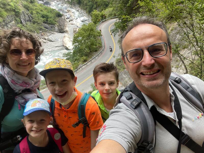Uiteindelijk komen we weer bij de auto en rijden we verder de Taroko Gorge weer uit. De kinderen willen zo snel mogelijk terug naar het B&B, maar daar hebben wij geen zin in, want wat moeten we op die kamer doen? We rijden dus op ons gemak terug en onderweg stoppen we nog verschillende keren. Soms stappen we met z'n allen uit, soms Pitrik even alleen om te kijken of iets de moeite waard is en soms Pitrik en ik even samen, omdat Ellis, Ruben en Noah geen zin meer hebben om de auto uit te komen.
