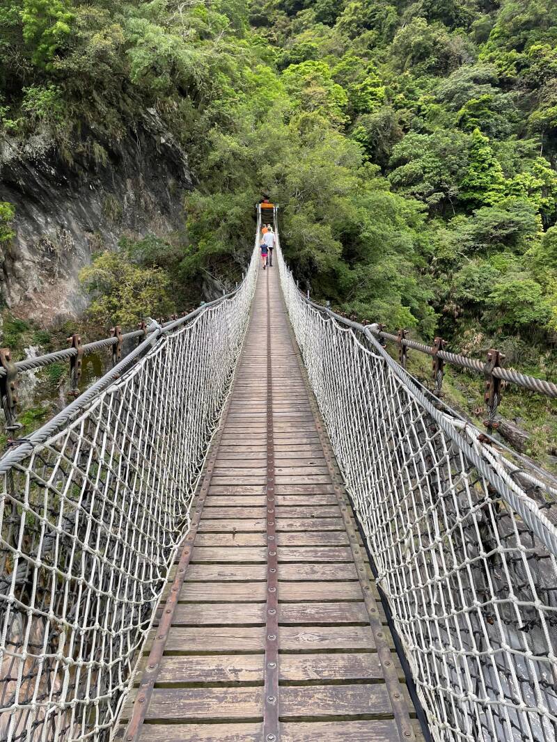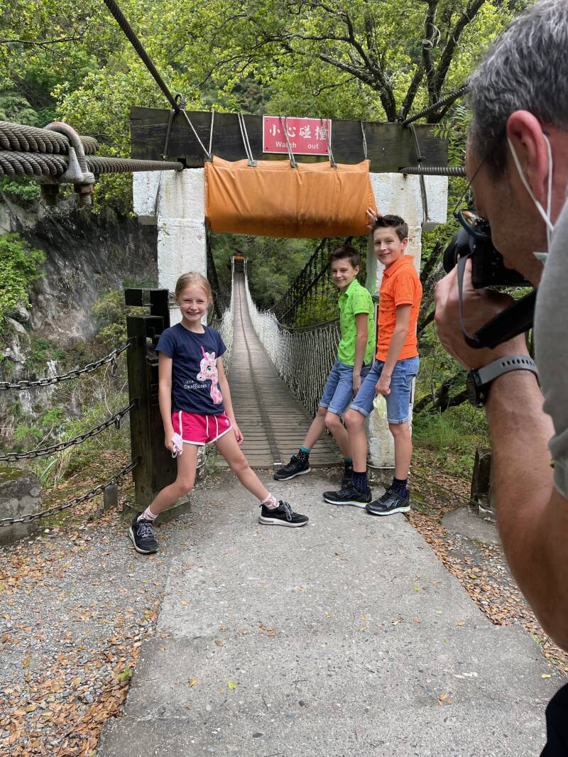 Een van de stops waar we er met z'n allen uitgaan, is bij een indrukwekkende hangbrug. Ik vind het wel spannend, zeker ook met de kinderen, maar uiteindelijk zijn we er met z'n allen overheen gewandeld en het was werkelijk prachtig.