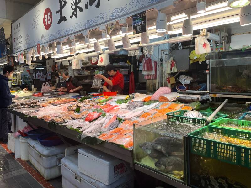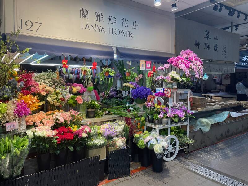 Viskraam op de Shidong Market - 5 april 2022 Bloemenkraam op de Shidong Market - 5 april 2022