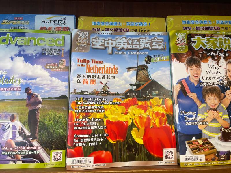 We hebben afgesproken dat Noah, Ruben en Ellis alledrie een Engels boek uit mogen zoeken, want dat is wel leuk voor in de vakantie. In deze boekhandel is heel veel keus... en we kunnen niet kiezen. Uiteindelijk gaan ze alledrie met twee boeken de winkel uit! Ik vind het ook altijd heerlijk om rond te kijken in de boekhandel... en ik kwam ook nog een stukje Nederland tegen...