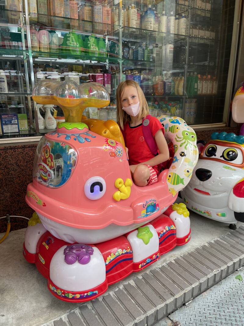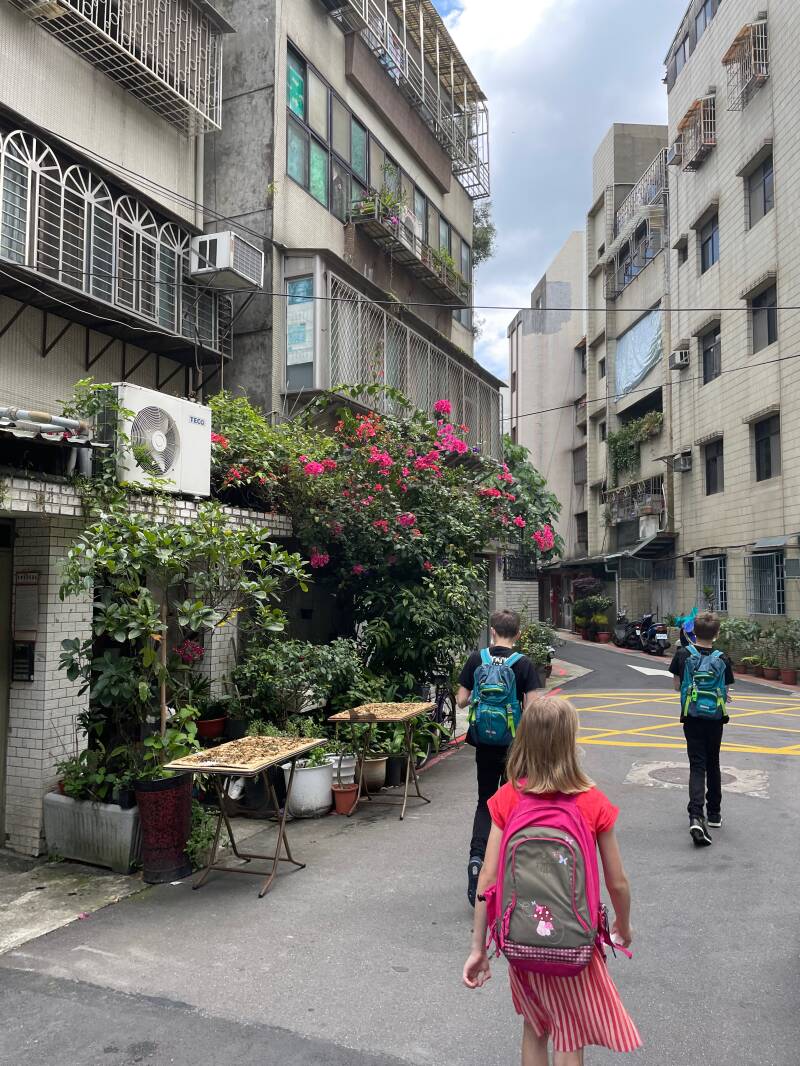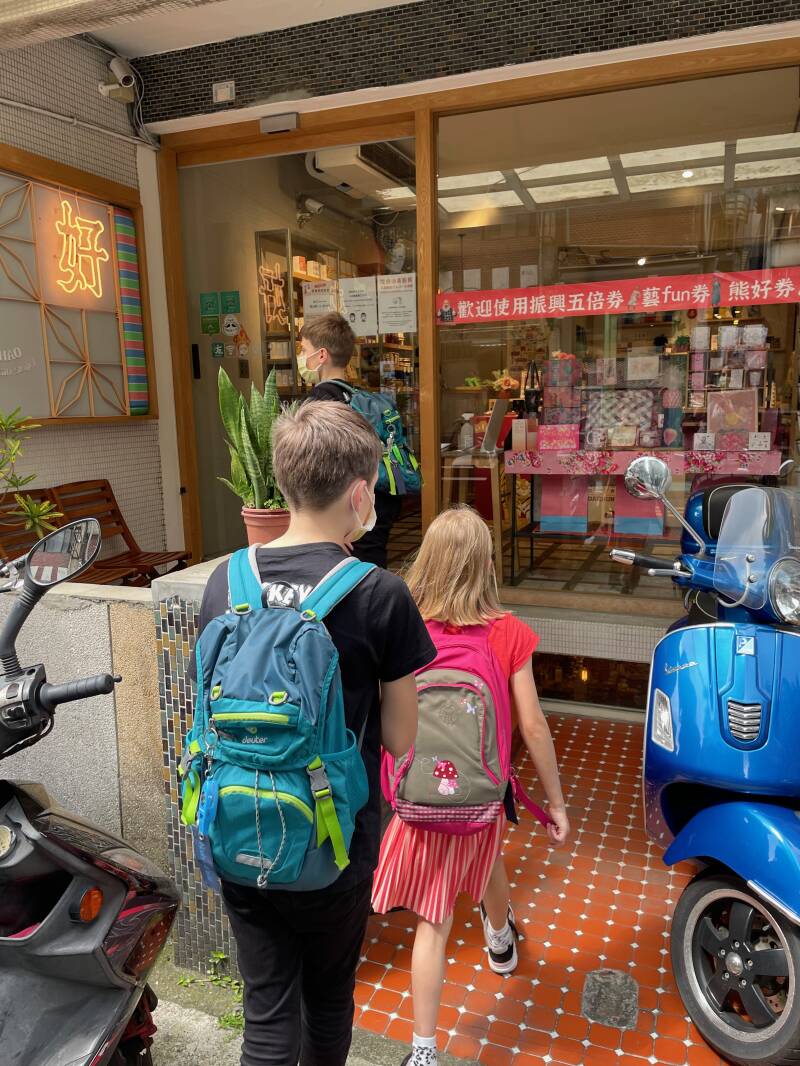 Als Pitrik op dinsdag gaat werken, ga ik met Noah, Ruben en Ellis op stap. Ons eerste doel is de apotheek om Ellis haar medicijnen op te halen. Op veel plaatsen is het lastig parkeren en we willen wat dingen combineren, dus we parkeren bij Tianmu Xice Parking en daarvandaan lopen we naar de apotheek. Dit is ongeveer 10 tot 15 minuten lopen. Het is al aardig warm, dus we zoeken vooral de schaduw op. Het ophalen van de medicijnen gaat voorspoedig en even later staan we alweer buiten.
