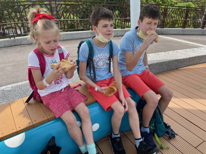 Vlakbij de parkeergarage zit een koffietentje met lekkere broodjes en daar zoeken we allemaal een lekker broodje uit voor straks bij de lunch en daarna gaan we naar de auto en rijden we eindelijk naar het Taipei Childeren's Amusement Park, want dat is ons grootste doel voor vandaag! Ellis heeft er al veel over gehoord van haar klasgenoten en ze wil er dus al een tijdje heel graag heen.